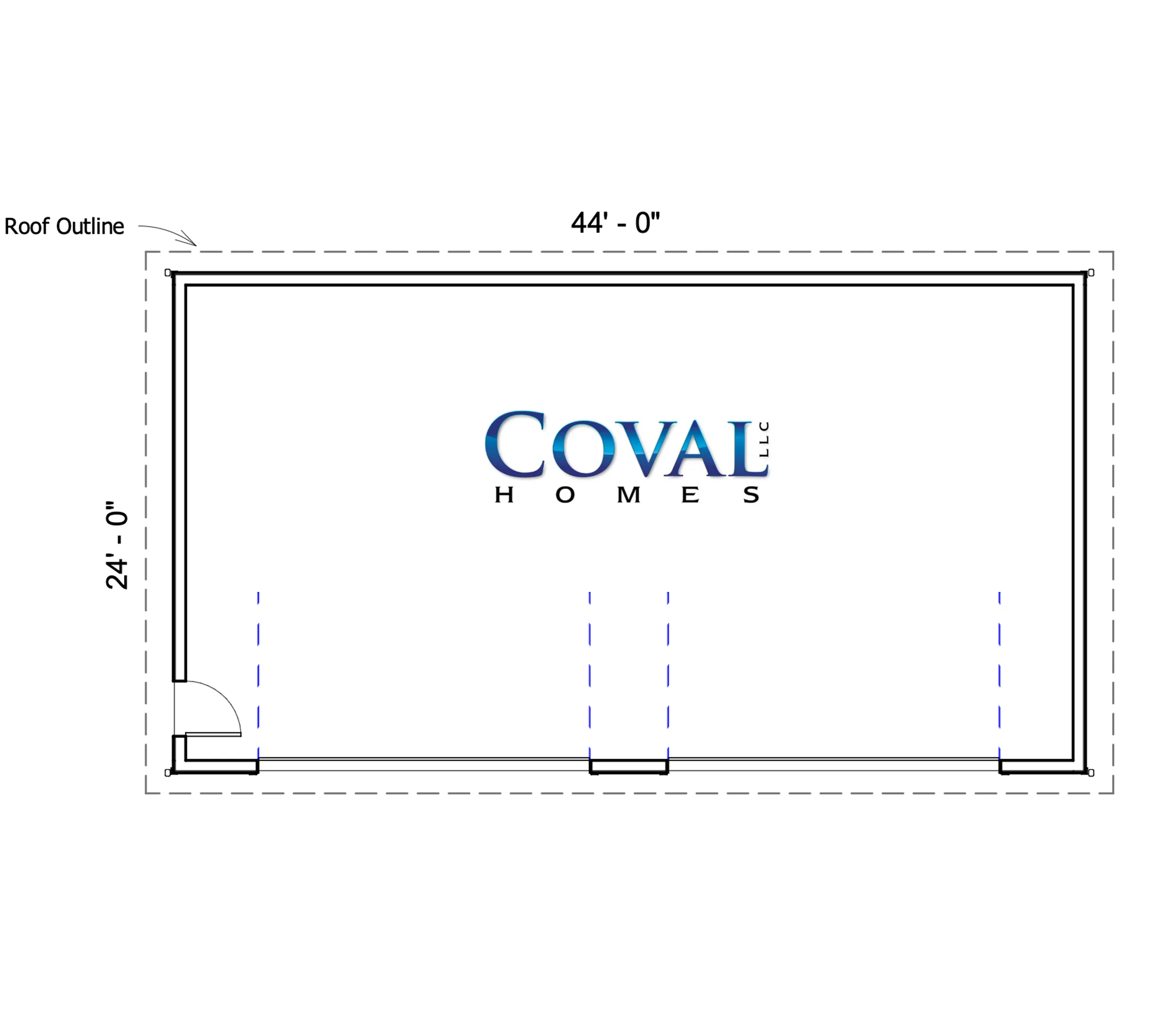 Maximum capacity. Spanning 1056 sq ft in a 44×24 footprint, this model accommodates multiple vehicles, deep shelving, and a generous shop zone, great for trailers, overlanding setups, or larger tool lineups.