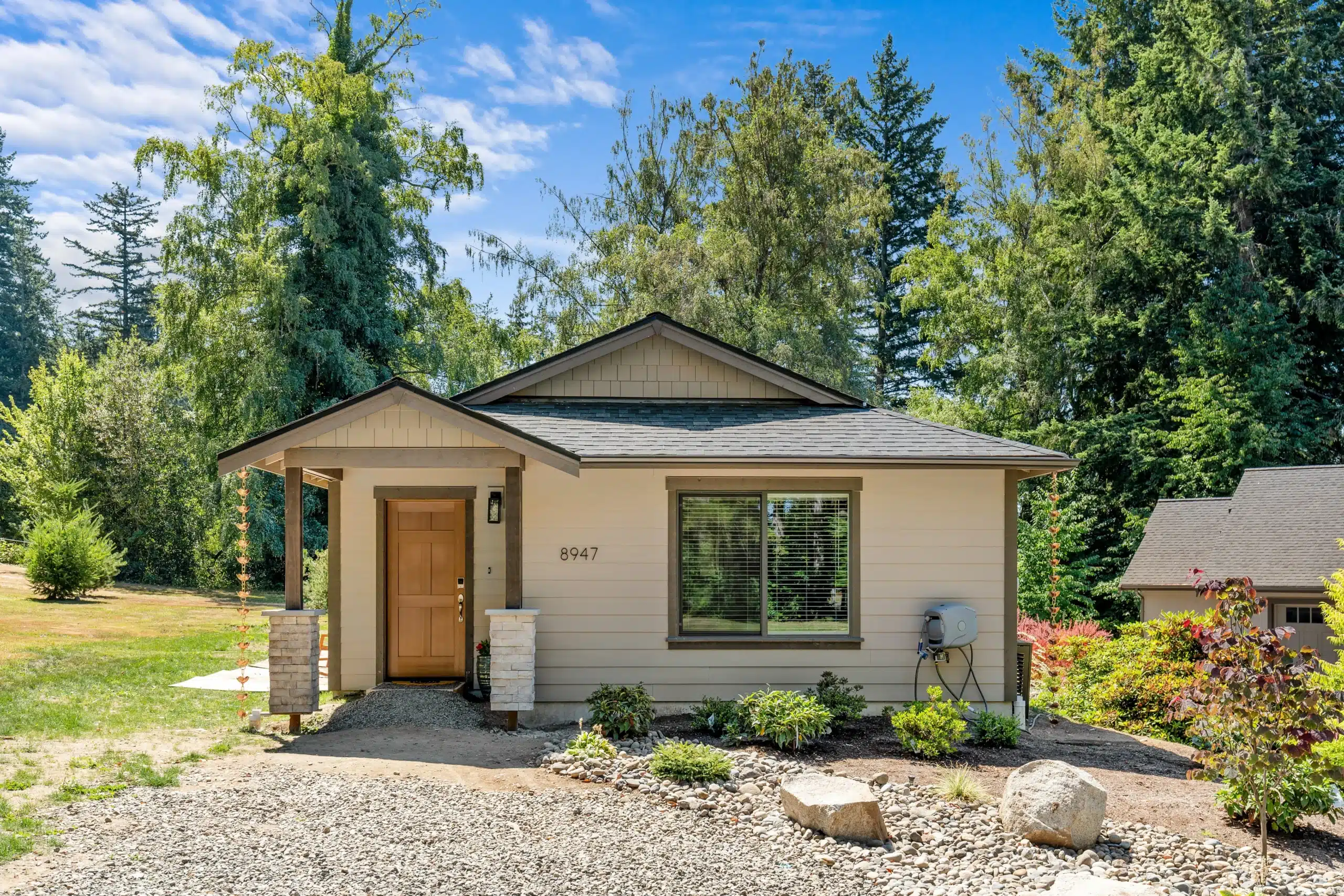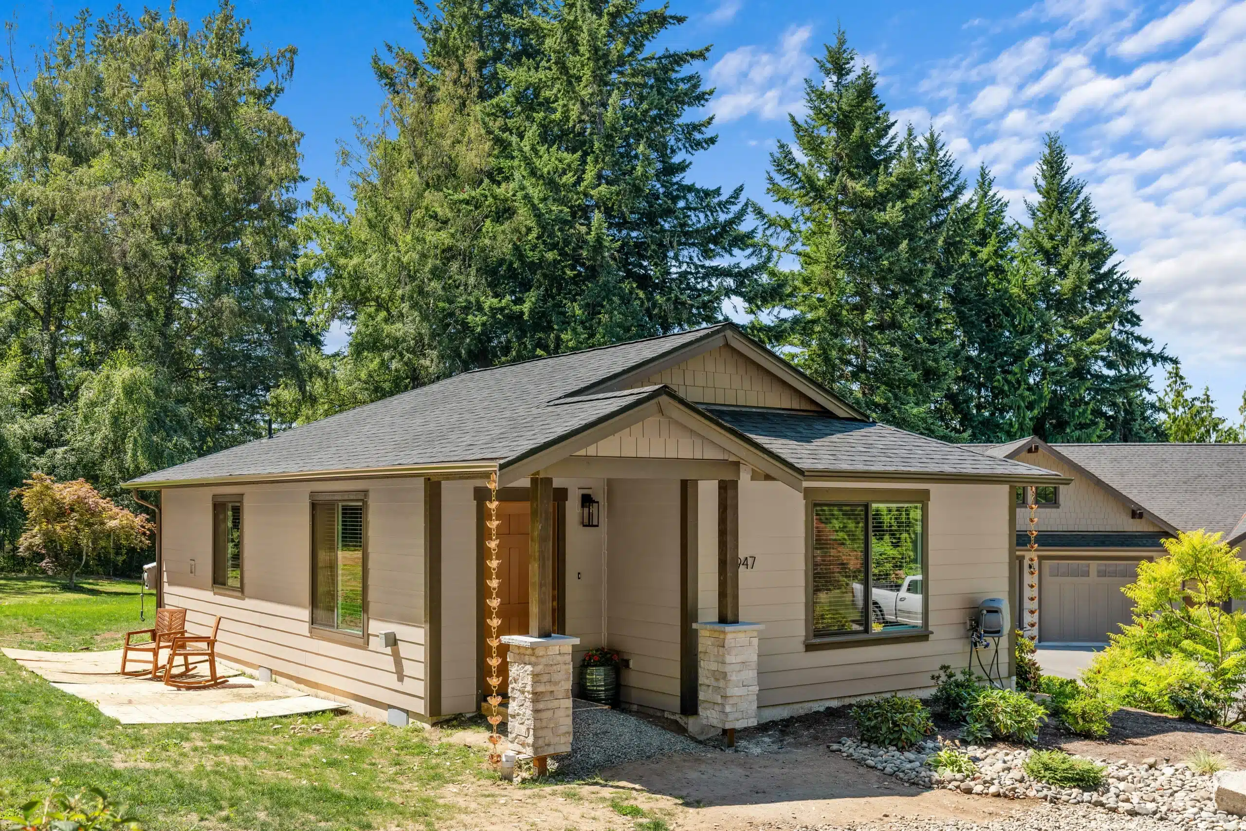 • Pine T&G Soffit on Front and Back Porches, 8″ Bargeboards