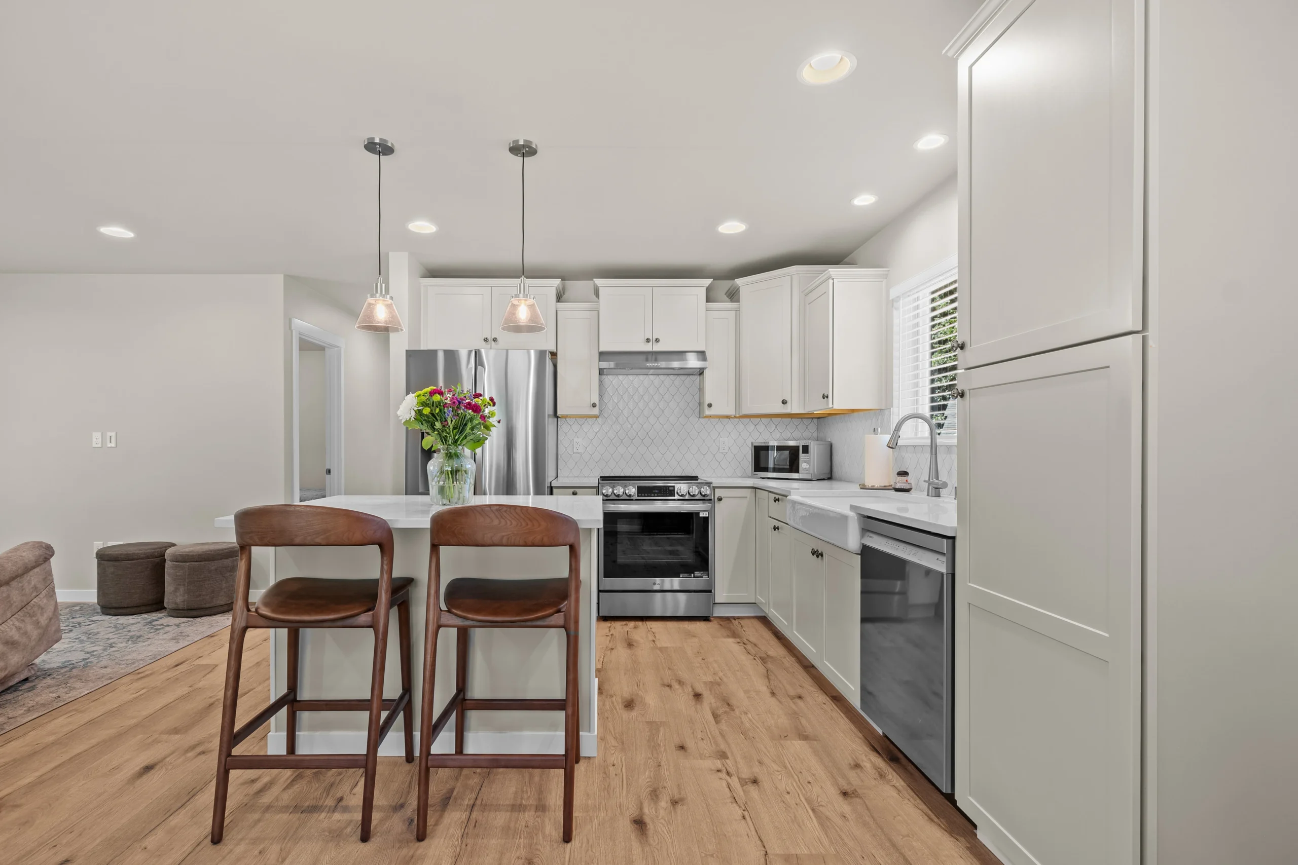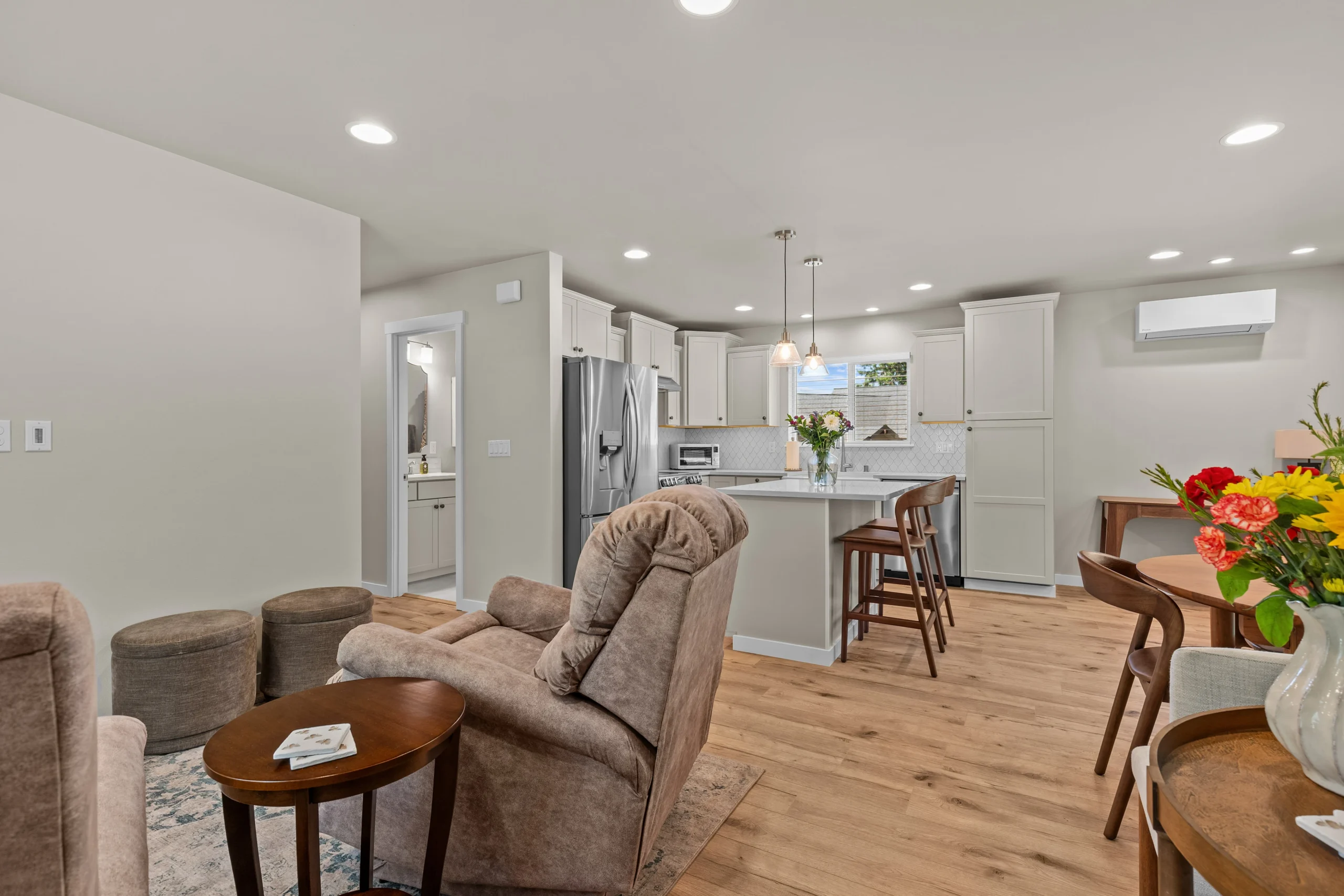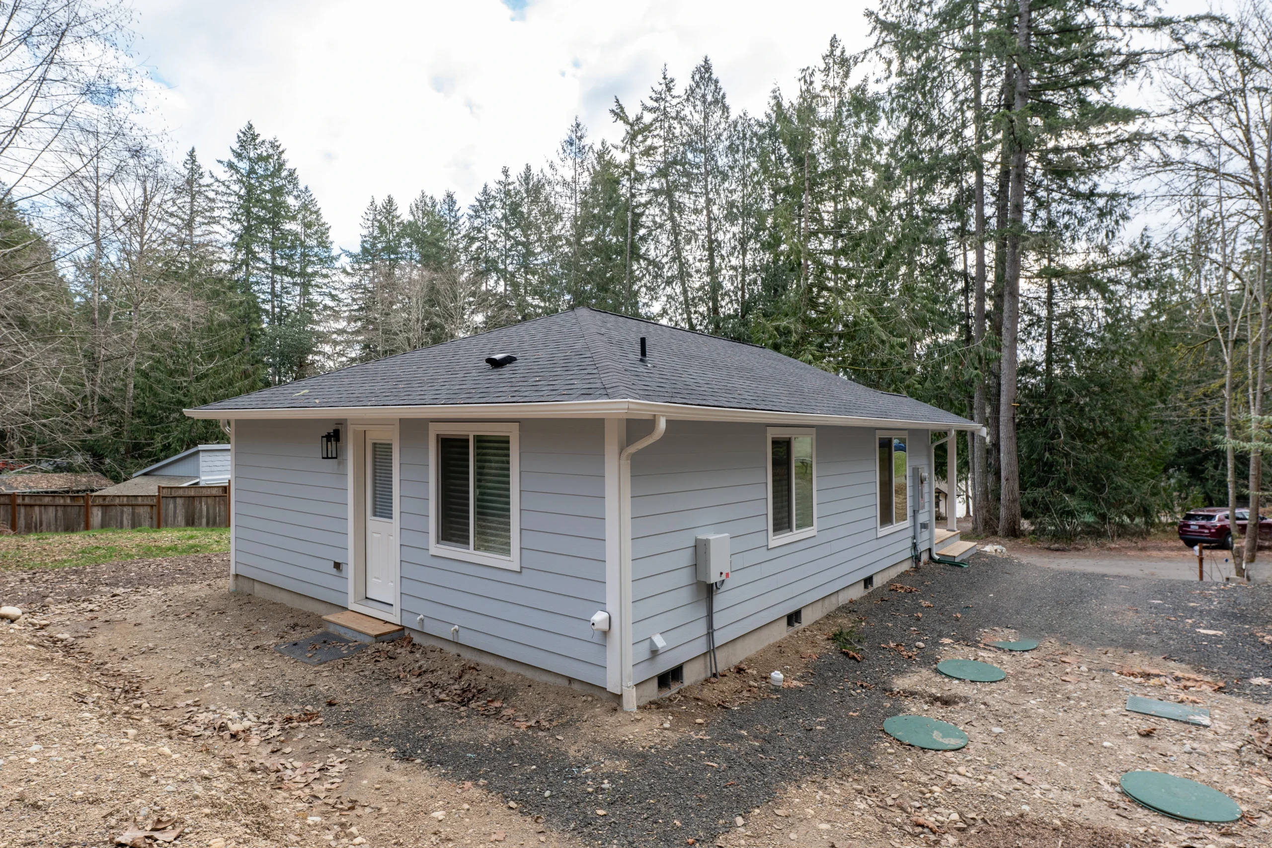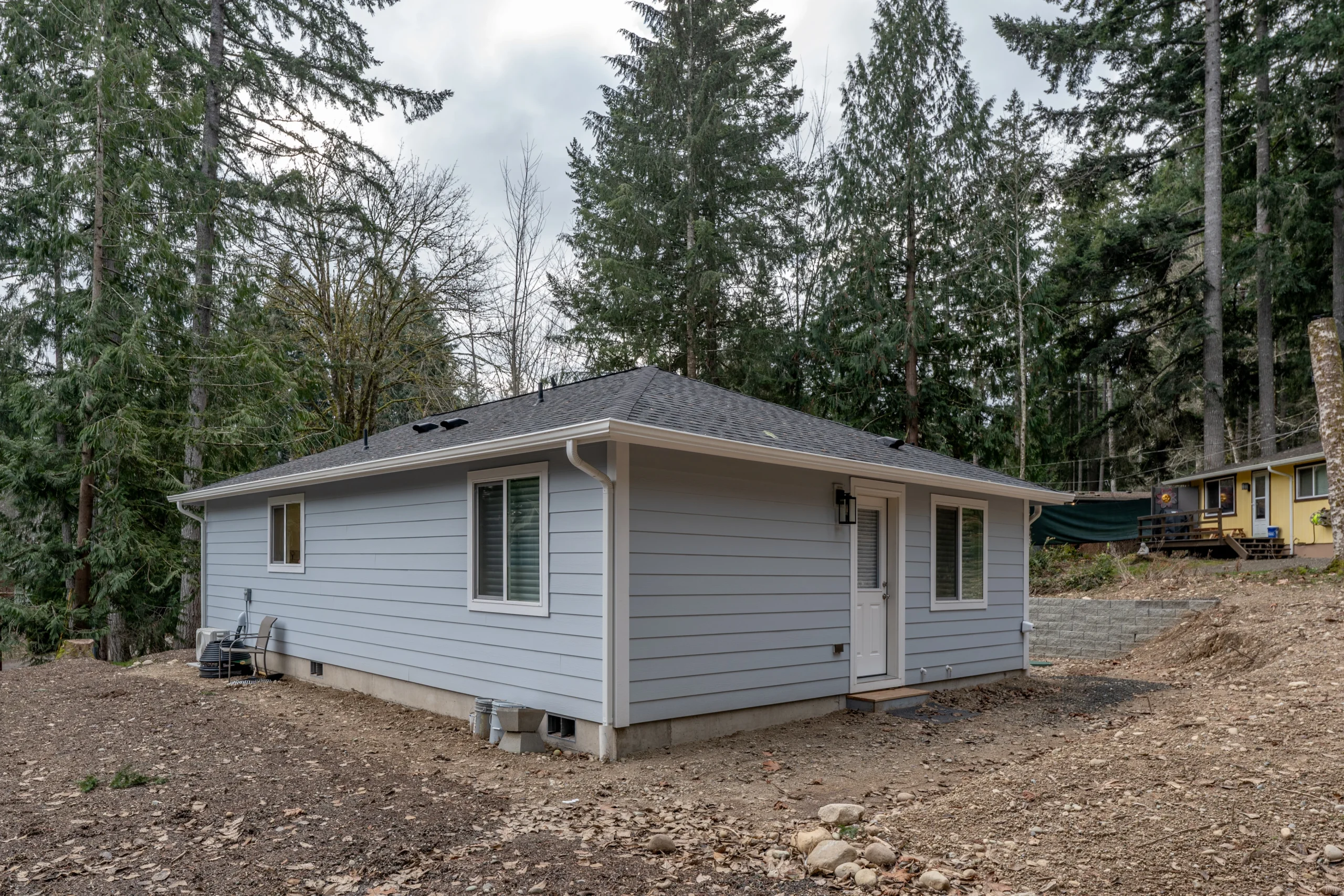 Meet the Hemlock, an 835 sq ft, 2 bed/1 bath DADU with bright, open living. Explore real project photos, take the interactive 3D/AR walkthrough, and review HERS® energy efficiency details; standard features include staggered cabinets with crown and a 50-year architectural roof.